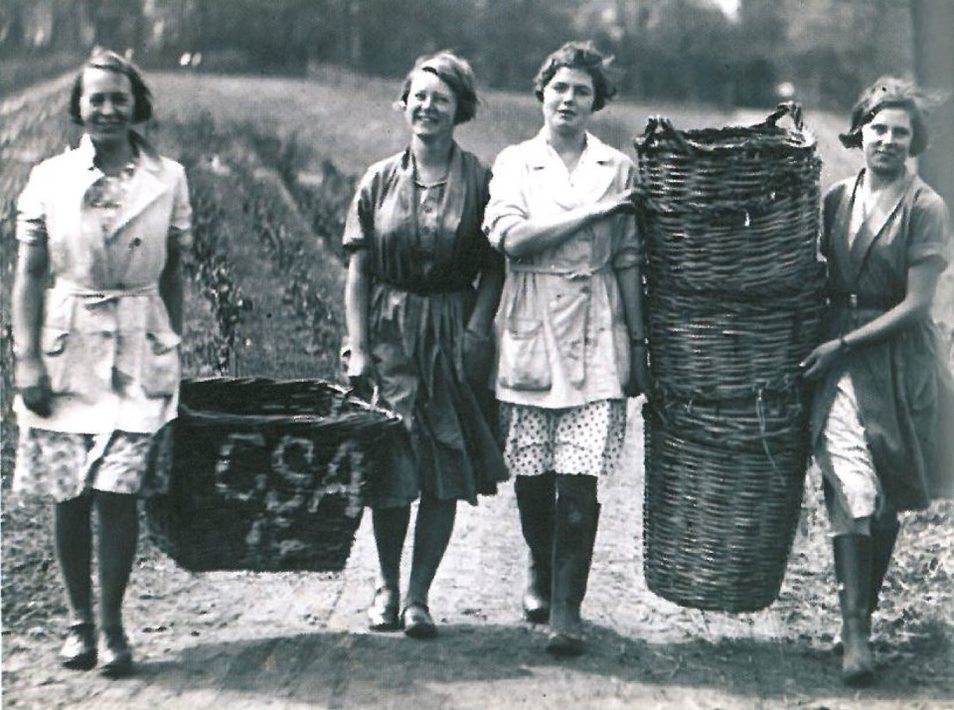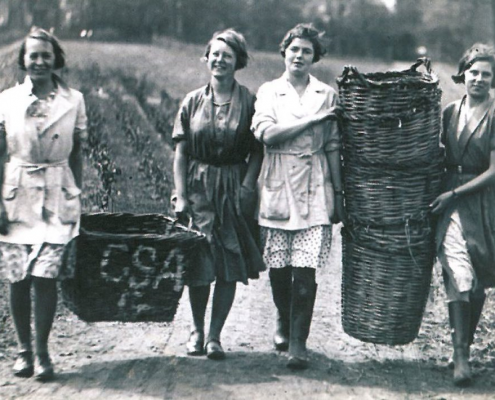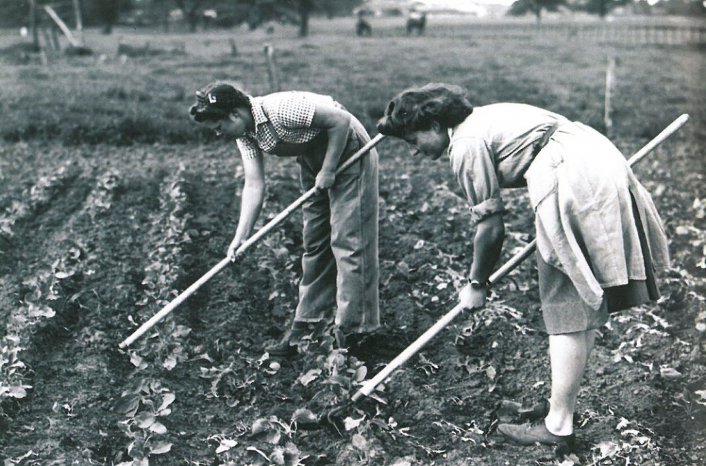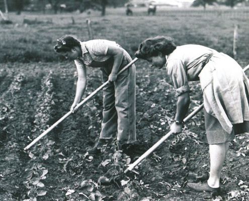 Raw recruits for the Women’s Land Army received four weeks of training in the skills needed to produce essential food supplies for Britain. They learned the techniques of market gardening, how to care for and milk cows, both by hand and machine, and how to grow and harvest field crops and animal fodder. These town dwellers were then found jobs on farms throughout Cheshire and beyond, joining country girls who were usually placed immediately.