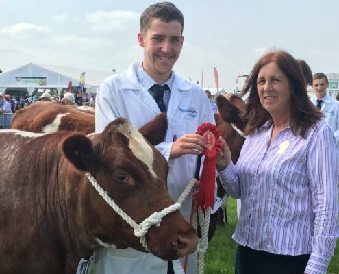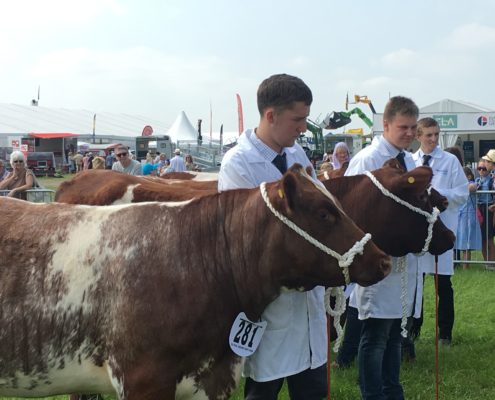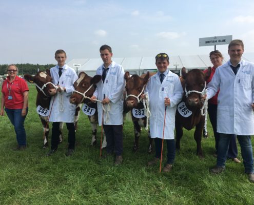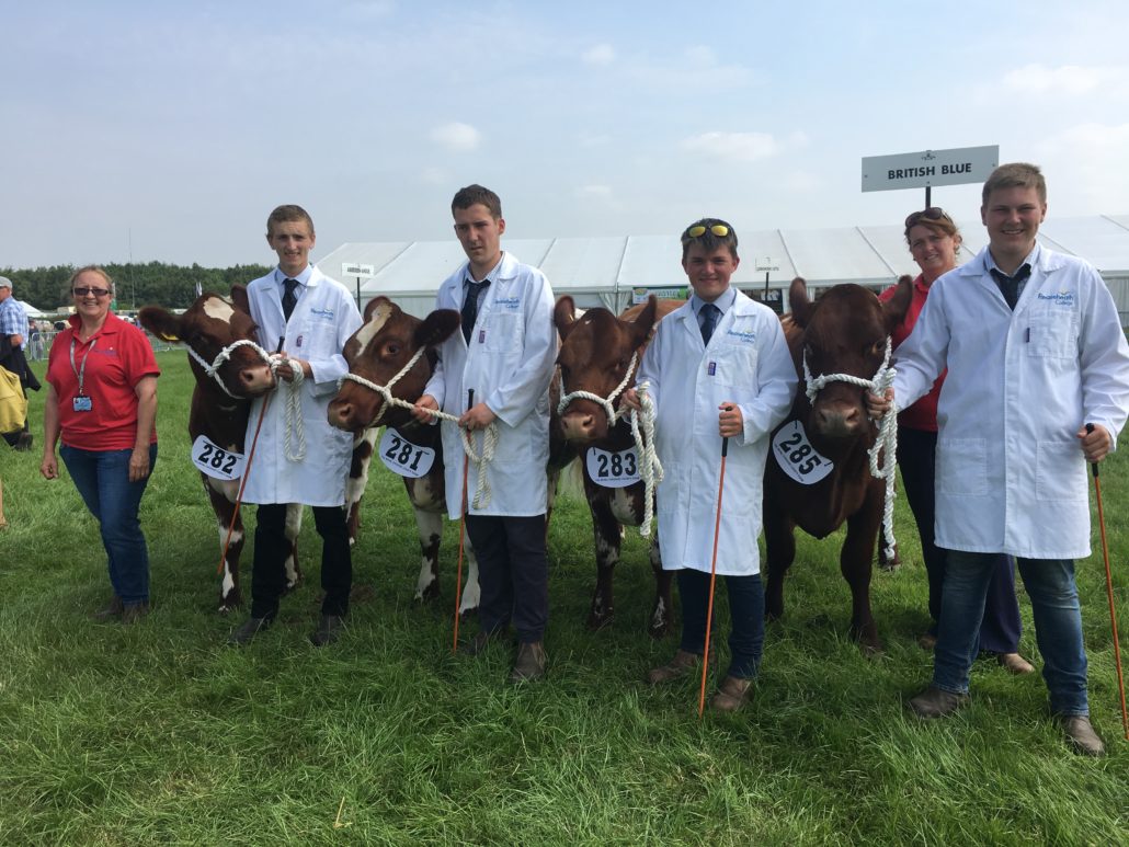 Level 3 Diploma in Agriculture students received a number of awards in the beef breeds cattle section after showing four in-calf shorthorn heifers from the Bridge House, Sandbach, pedigree herd for farmers George and Brenda Sutton. The students trained and prepared the cattle for the showring and gained rosettes in both breed and young handler classes.