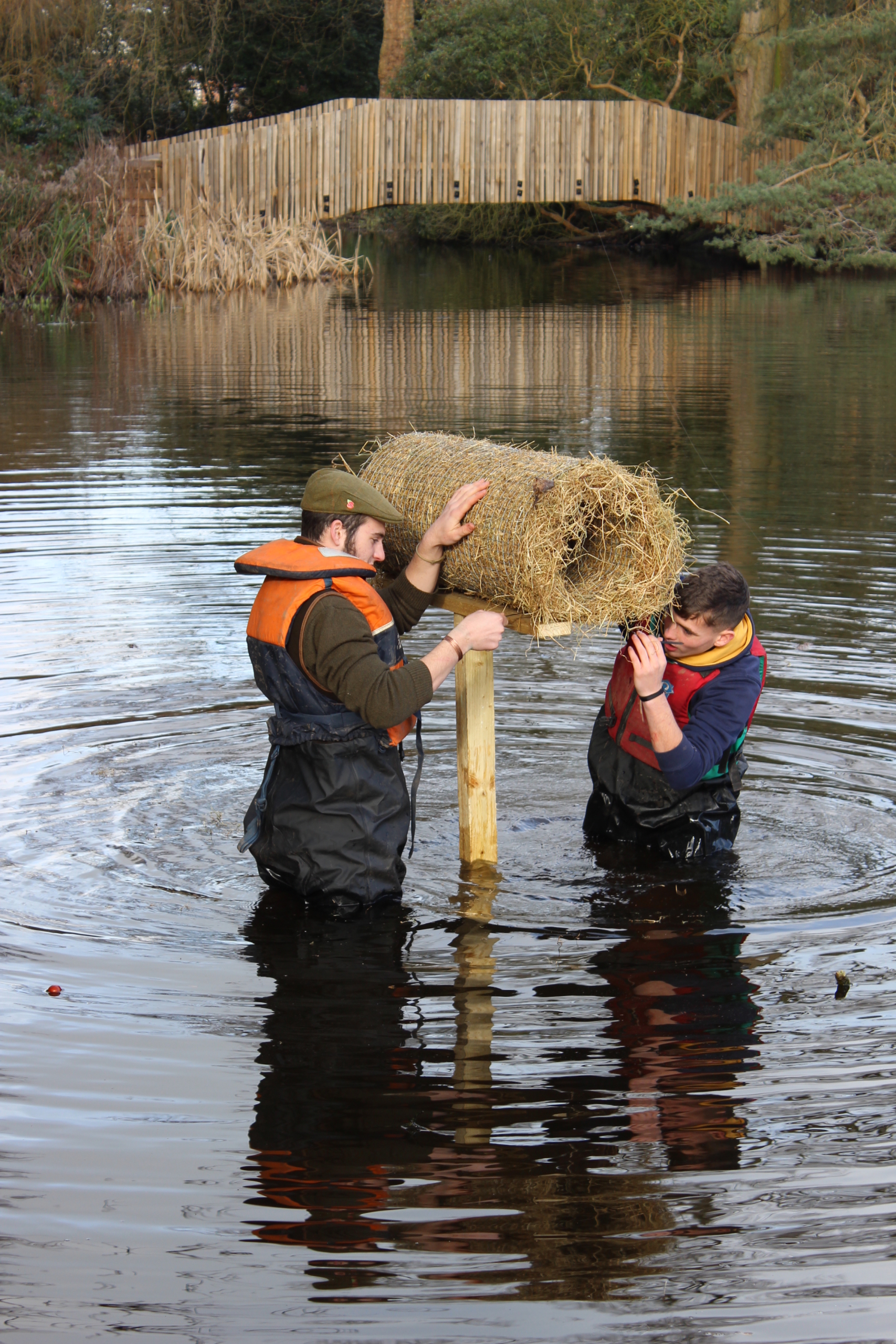 You are here: Home1 / 2 / Reaseheath College students give ducks a safe place to nest3 / Joe Ridge and Daniel Wellsbury-Ault installing duck nesting tubes at R...