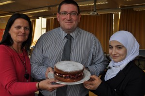 You are here: Home1 / 2 / Reaseheath College’s home baking challenge hots up3 / Dia Alwaa with Julie Bent and Nick Blakemore Victoria sponge