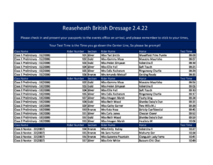 Reaseheath British Dressage Times 2.3.22