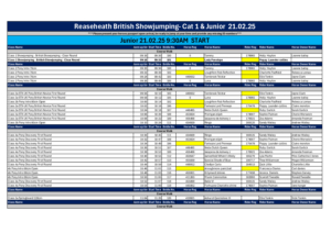 British Showjumping – Cat 1 & Junior – FEBRUARY 21st times
