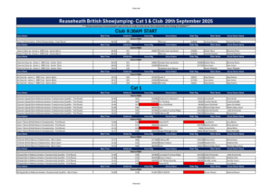 Cat 1 and Club BS Competition Times 20-09-2025 Update 19-09