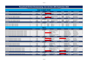 You are here: Home1 / 2 / Reaseheath Equestrian Centre3 / British Showjumping4 / Cat 1 and Club BS Competition Times 20-09-2025 Update