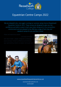 You are here: Home1 / 2 / Reaseheath Equestrian Centre3 / Reaseheath Equestrian Centre Camps4 / 2022 Camp Information and Terms and Conditions