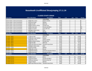 Reaseheath Unaffiliated Showjumping – NOVEMBER 17th
