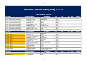 Reaseheath Unaffiliated Showjumping – NOVEMBER 17th