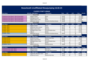 Reaseheath Unaffiliated Showjumping Results16th February 2025 (1)