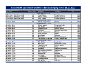 Reaseheath Unaffiliated Showjumping Times 16.07.2023