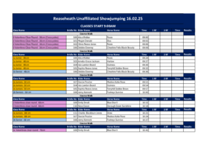 Reaseheath Unaffiliated Showjumping times 16th February 2025