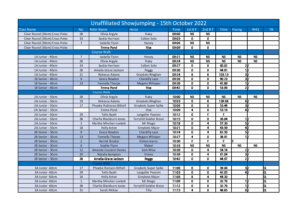 Unaffiliated Showjumping Results – 15-10-2022 Updated