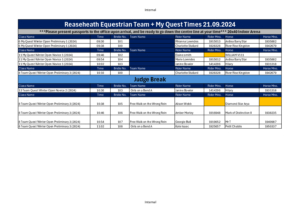 You are here: Home1 / 2 / Reaseheath Equestrian Centre3 / Team Quest & My Quest4 / TEAM & MYQUEST 21.09.24 Times PDF – September
