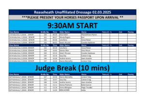 Reaseheath Unaffiliated Dressage 2nd March Times