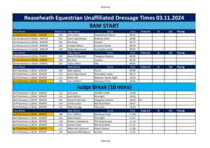 Reaseheath Unaffiliated Dressage 3rd November pdf TIMES
