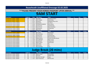 Reaseheath Unaffiliated Dressage Times February 2nd 2025 – proper copy