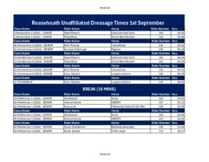 You are here: Home1 / 2 / Reaseheath Equestrian Centre3 / Unaffiliated Dressage4 / Reaseheath Unaffiliated Dressage Times