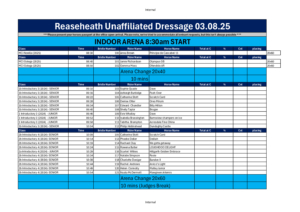 You are here: Home1 / 2 / Reaseheath Equestrian Centre3 / Unaffiliated Dressage4 / UD Times 3rd August 2025