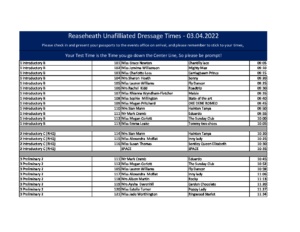 You are here: Home1 / 2 / Reaseheath Equestrian Centre3 / Unaffiliated Dressage4 / Unaffiliated Dressage Times 2.3.22