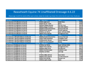 You are here: Home1 / 2 / Reaseheath Equestrian Centre3 / Unaffiliated Dressage4 / Unaffiliated Dressage Times 5.6.22