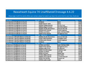 You are here: Home1 / 2 / Reaseheath Equestrian Centre3 / Unaffiliated Dressage4 / Unaffiliated Dressage Times 5.6.22