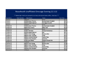 You are here: Home1 / 2 / Reaseheath Equestrian Centre3 / Unaffiliated Dressage4 / Unaffiliated Evening Dressage 22.3.22