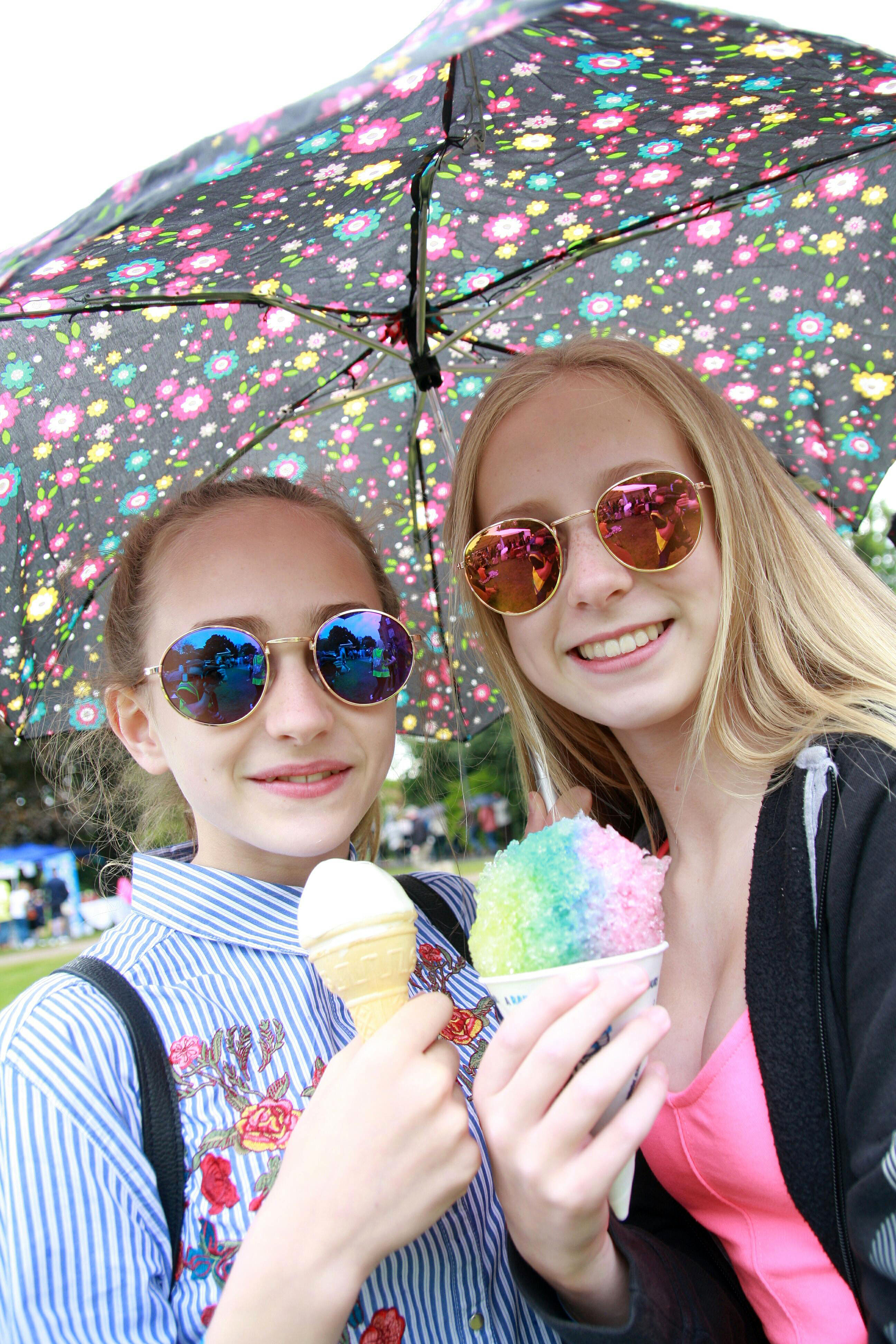 You are here: Home1 / 2 / Reaseheath’s Family Festival draws visitors from across region3 / 4. Olivia, 12, and Isabella, 14, Proudman take shelter from the brief ...