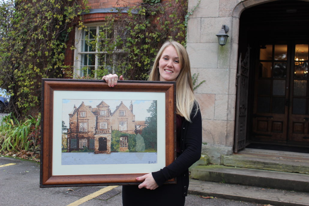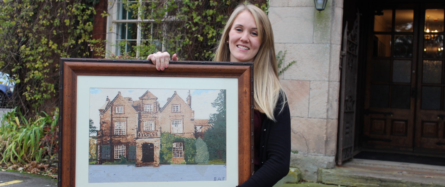 A tapestry picture of Reaseheath Hall made to commemorate a wedding 18 years ago has been gifted back to college.