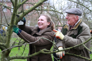 You are here: Home1 / 2 / Reaseheath students and volunteers prepare community orchard for spring3 / Student Lisa Podmore and retired Reaseheath lecturer Harry Delaney