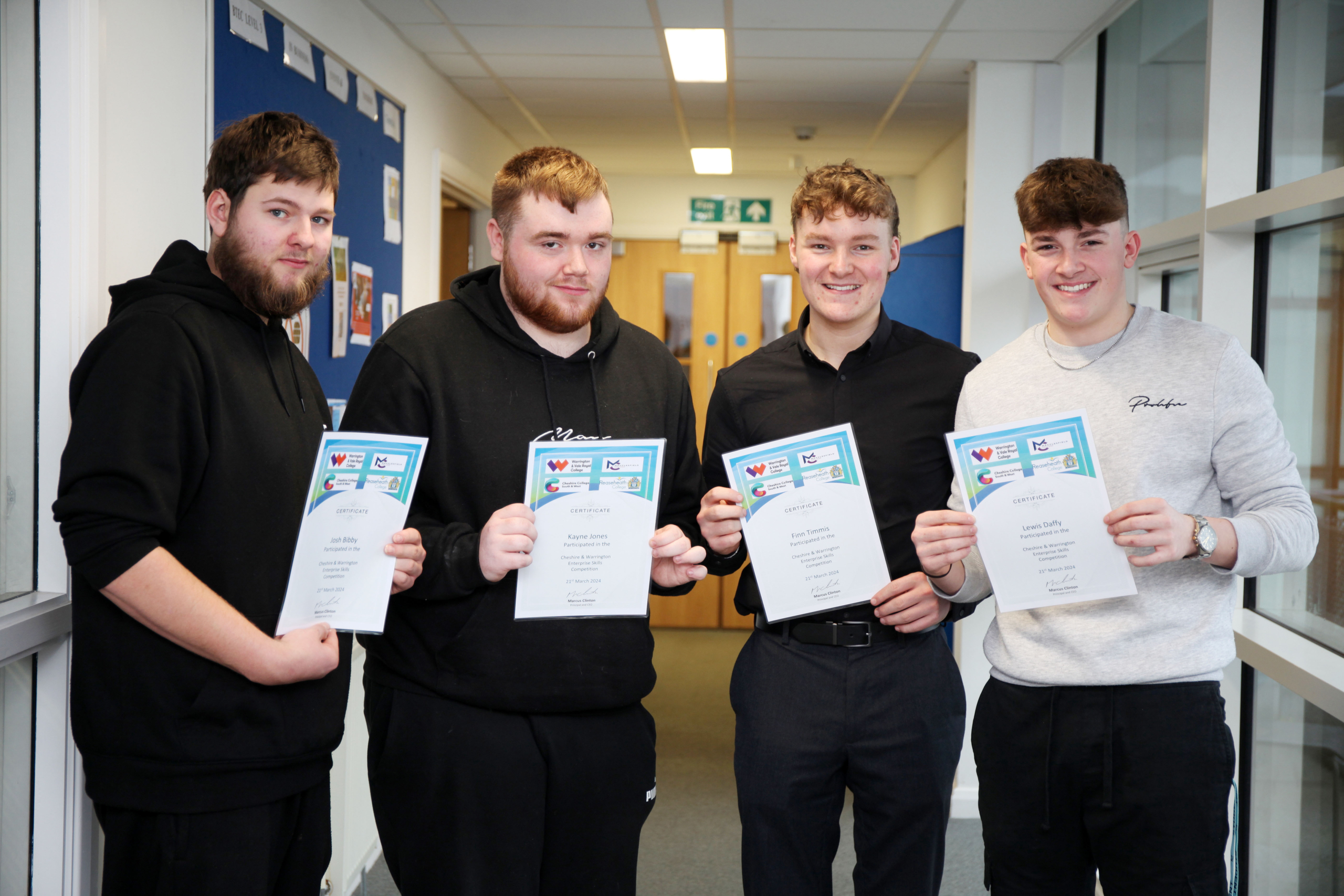 You are here: Home1 / 2 / Reaseheath students win festival recycling challenge at inter-college business competition3 / Macclesfield Josh Bibby, Kayne Jones, Finn Timmis, Lewis Daffy