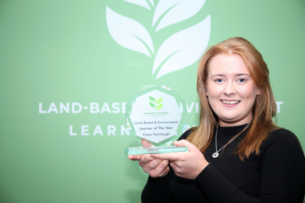 Aspiring agriculturist Cerys Fairclough, a former Reaseheath Level 3 Advanced Technical Extended Diploma in Agriculture student, who was crowned Overall Learner of the Year 2023 and also scooped the Agriculture Learner category.