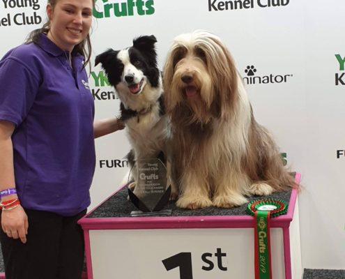 She has been showing dogs for 11 years and has consistently gained good placings at Crufts in grooming and obedience classes. Eventually she hopes to work as a canine behaviourist.