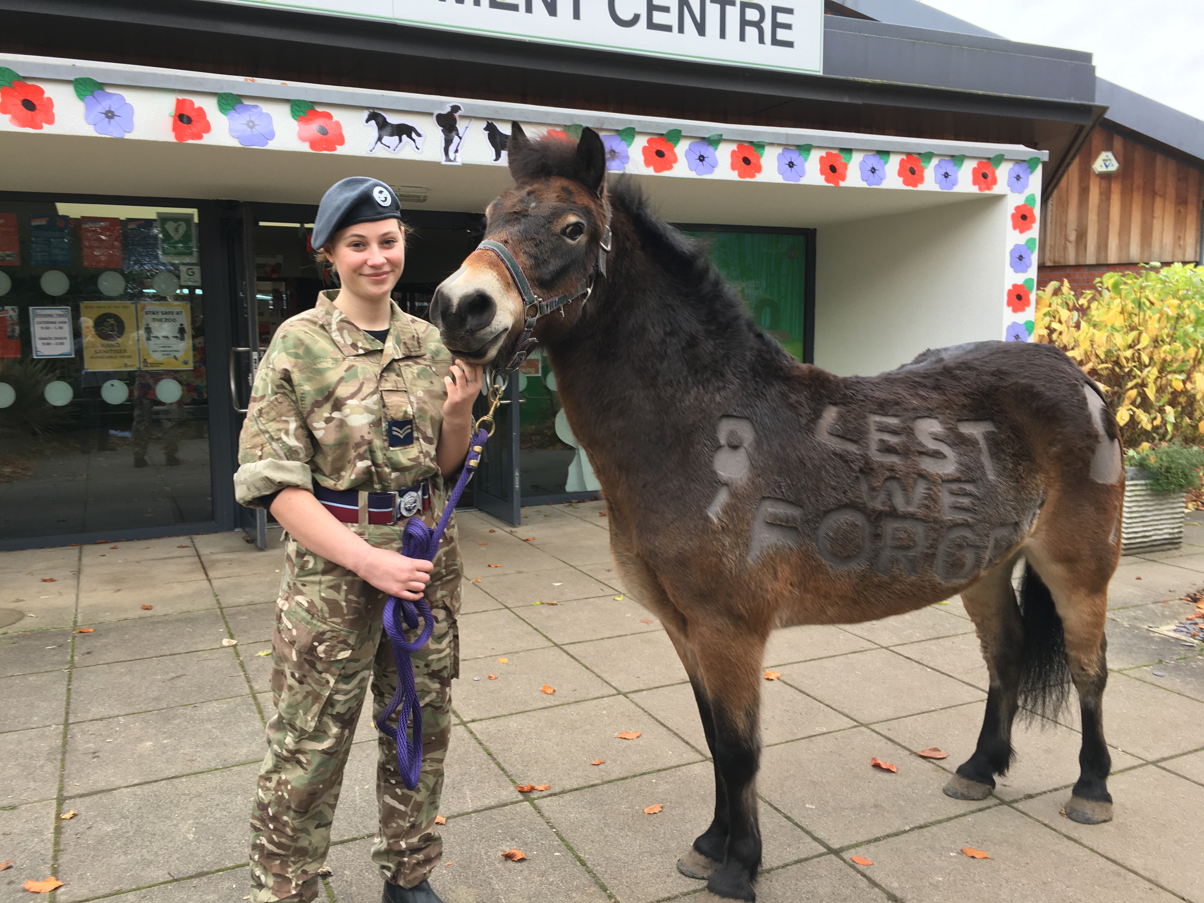 You are here: Home1 / 2 / Reaseheath unites to remember3 / Royal Airforce Air Cadet Elin Jones with pony Yohan
