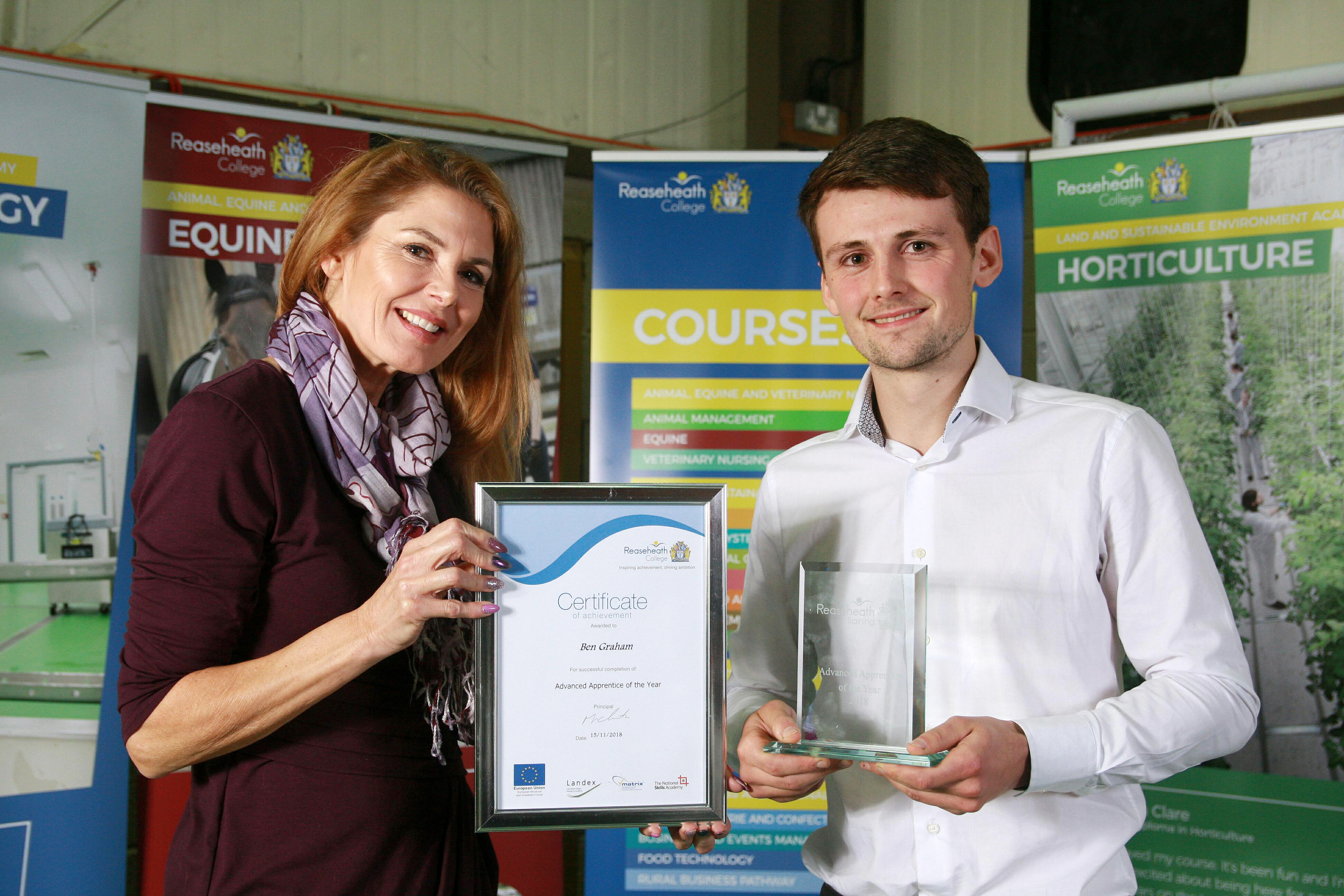You are here: Home1 / 2 / Reaseheath’s apprentice stars recognised3 / Sponsor Jacqueline Smith, Advanced Apprentice of the Yr Ben Graham