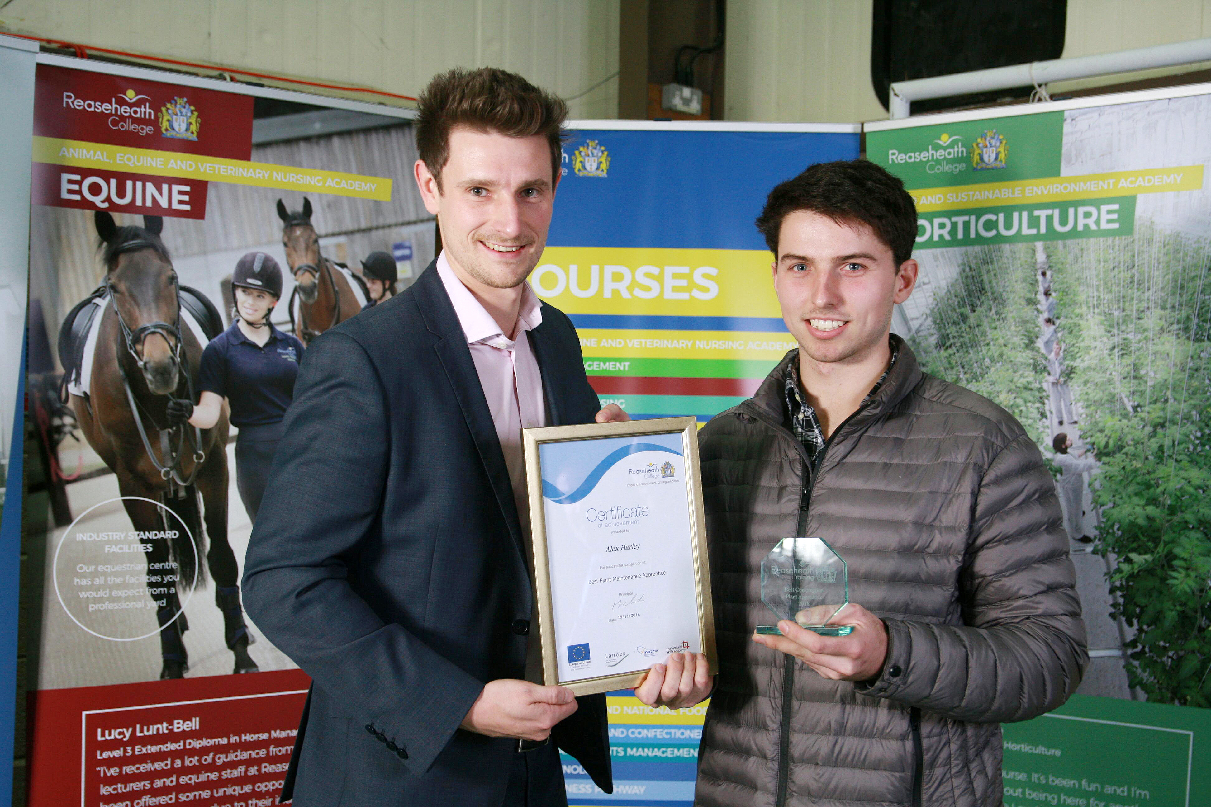 You are here: Home1 / 2 / Reaseheath’s apprentice stars recognised3 / Sponsor Rob Winstanley and top plant maintenance apprentice Alex Harle...