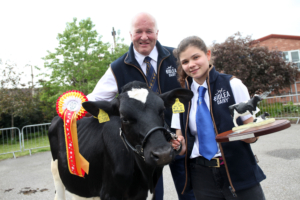 You are here: Home1 / 2 / Reaseheath’s Family Festival ‘best ever’3 / Calf show champion Lorna Preece with judge Ray Brown