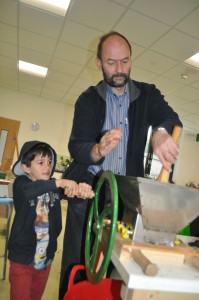You are here: Home1 / 2 / Reaseheath’s festival gets to the core of fruit growing3 / max-brackley-6yrs-uses-an-apple-shredderwith-gary-hewins-1mb