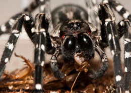 Although our spiderlings were just 4mm on hatching they will grow to impressive black and white adults measuring 12cm. They are highly unusual because they actively hunt their prey rather than ambushing them.