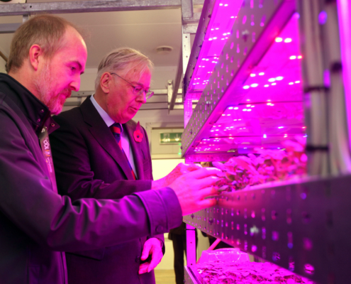 He then officially opened Reaseheath’s Vertical Farm – the UK’s largest training and research centre for vertical farming – which was completed in 2021. This facility grows a range of crops using LED lighting and tiered systems of plants growing in temperature and light controlled environments.
