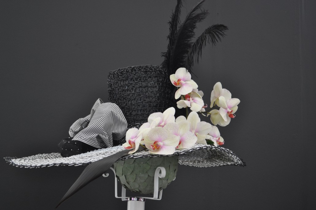 The challenge at Tatton was to create four designs which represented ‘Musical Through Time’. Reaseheath’s florists chose ‘My Fair Lady’ as their theme and created a hat, a wired bouquet, a buffet table arrangement and an arrangement for the entrance of the theatre.