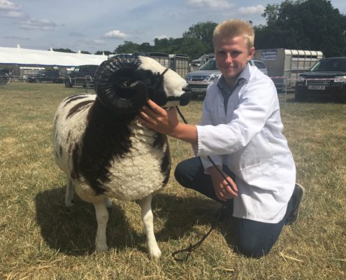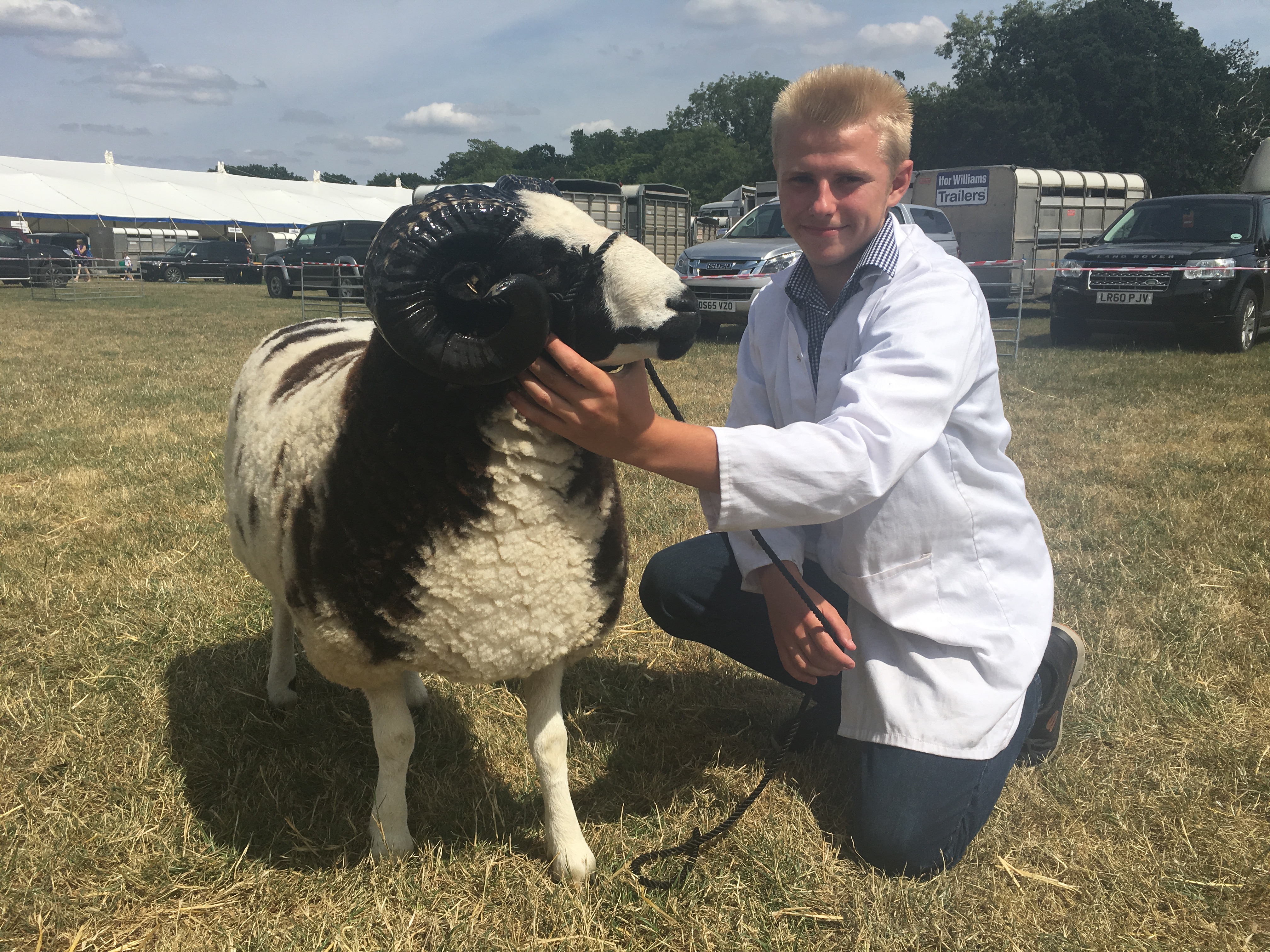 A Jacob ram called Prince Philip and shown by Level 1 joinery student Tom Lewis took the Championship in the Native British Breeds in the sheep section. Tom won a fistful of prizes including four firsts, one third and one fifth with sheep from his Salopearl flock, based in Whitchurch.