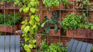 Harry works for Acorn Landscape Services, who built the show garden, and is also an award winning vegetable grower, so he was invited to plant up a ‘green’ wall packed with vegetables, fruit and herbs as a backdrop for the garden’s seating area.