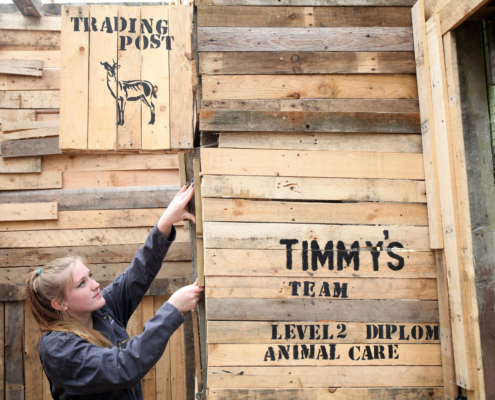 The result is an eyecatching themed enclosure, highlighting the illegal wildlife trade, which has been built entirely from recycled and repurposed materials. Donations of materials from across college – particularly from our estates maintenance, horticulture, food, construction and foundation departments – were combined with further donations from the public and local businesses such as Nantwich Saddlery, and the whole build was supported by our Animal Centre’s dedicated maintenance team.