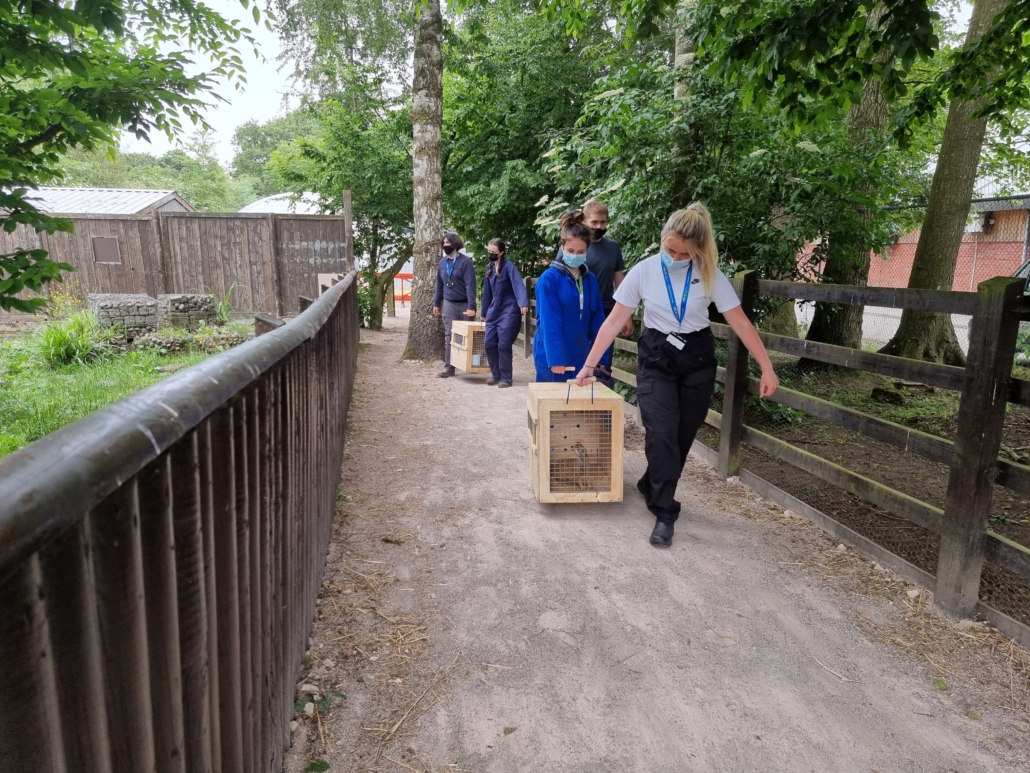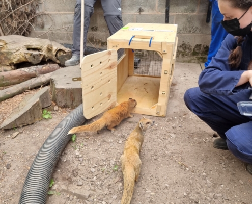 Timmy’s Team was also involved in conditioning and training the mongooses in preparation for their move, using positive reinforcement to get them willingly into their transport crates. The introduction went very smoothly and the lively pair have settled in well.