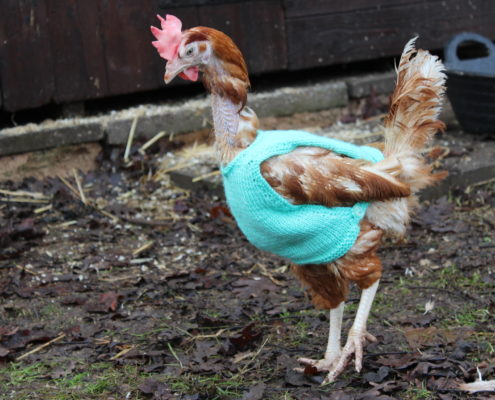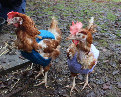 Bald hens are staying snug this winter thanks to woolly jumpers knitted for them by Reaseheath’s warm hearted students