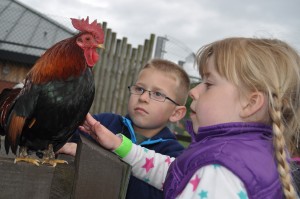 You are here: Home1 / 2 / Phenomenal success for Reaseheath Family Festival3 / Isla and Oliver Wall from Wincham meet Chris the cockerell