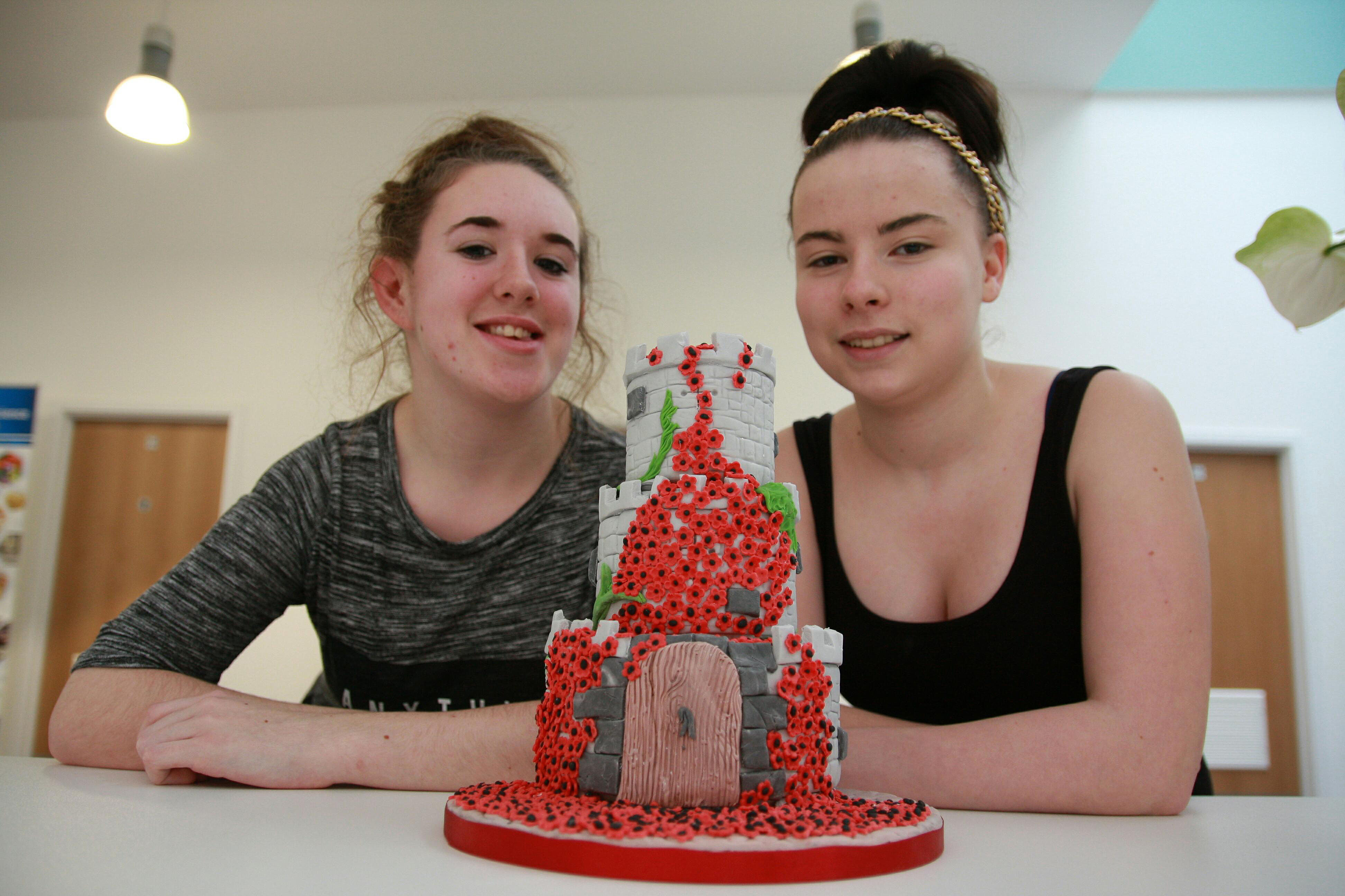 You are here: Home1 / 2 / Sweet success for bakery students’ memorial cake3 / Jade Walker and Courtney Potts Level 2 Bakery, with remembrance cake