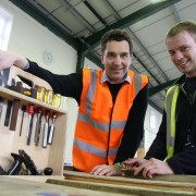 Top joinery apprentice Edward Oliver with his employer Craig Hallworth