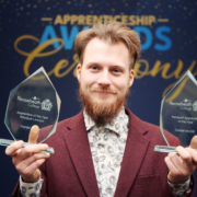 Top honours of the evening went to Apprentice of the Year Adam Hughes, a plant maintenance engineer for Gunn JCB, and to Advanced Apprentice of the Year Lyndsay Jones, a production operator and machine setter for Aimia Foods, a food and beverages manufacturer.