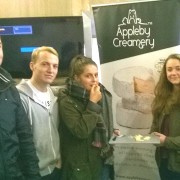 First stop was Arla in Leeds, to see their extensive liquid milk processing site. Next stop was Wensleydale Creamery in Hawes, North Yorkshire, to see the wonderful array of cheeses made at this small scale creamery. Students were treated to a fantastic array of samples including Wensleydale cheese with Mango and Ginger, Blue Wensleydale and their extra mature Wensleydale Kit Calvert. After a rather rainy night in Kendal it was on to an artisan cheese producer, Appleby Creamery, where they saw how to make some fantastic sheep’s milk cheese.