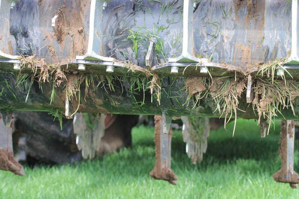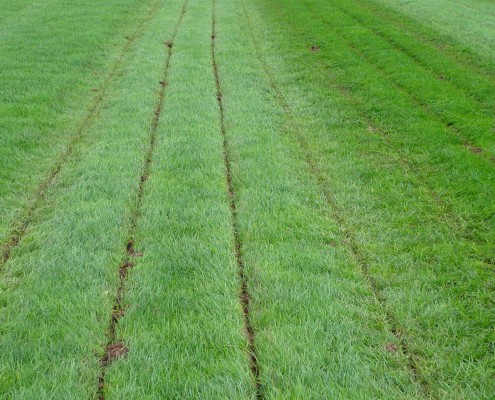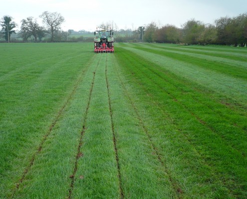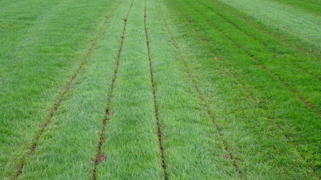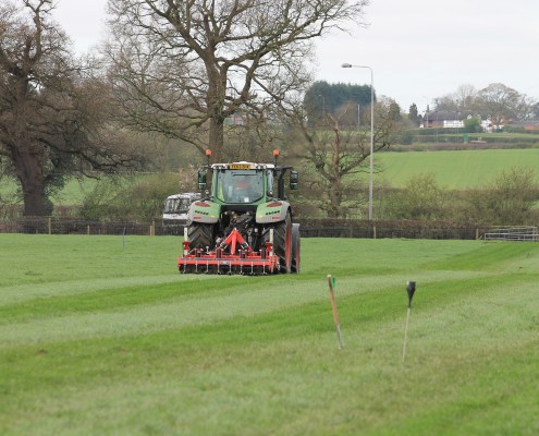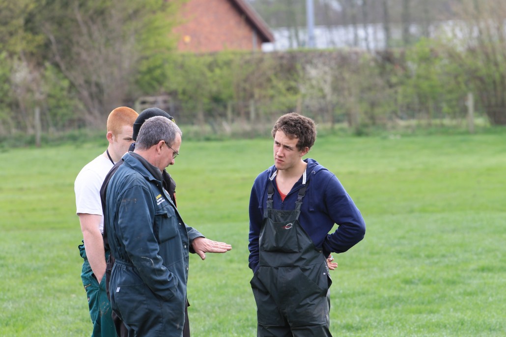 The field was split into three areas. The first strip has been treated with the subsoil machine provided by SUMO at a depth of 8 inches. The middle strip was left untreated. The final strip, at the far end of the field, was aerated to a depth of 4 inches by first year Level 3 Extended Diploma students on one of their practicals. This enable staff and students to compare and contrast the different treatments available to existing swards.